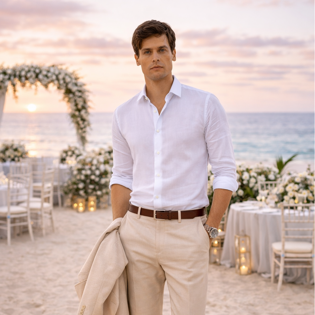 El código de vestimenta masculino marca el punto de partida. El color, el lino y la actitud hacen el resto.