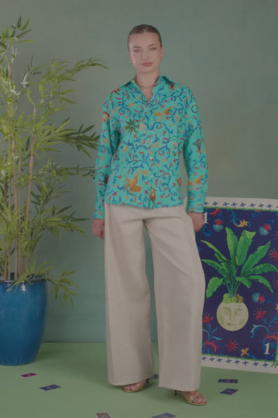 women's shirt linen delphos turquoise