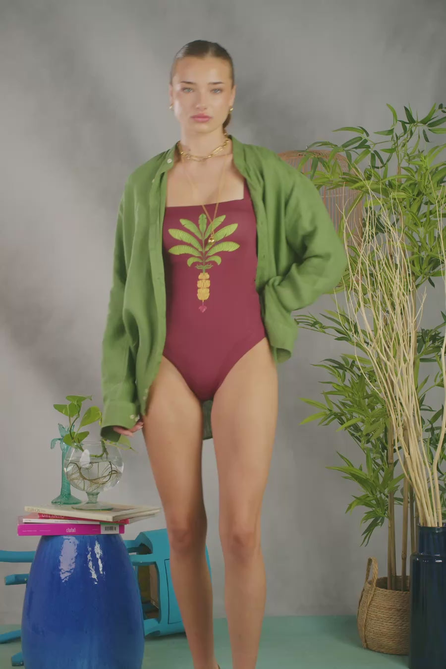 Women's swimsuit one piece thalos wine