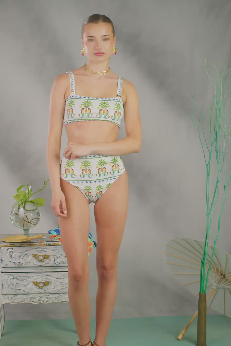 This straight cut top combines comfort and style through its refined construction. Its strapless design enhances the silhouette, while the optional removable straps with gold hardware offer a sophisticated touch and a customizable fit. Lightweight and versatile, it is designed for warm climates and for women who appreciate elegance in every detail.